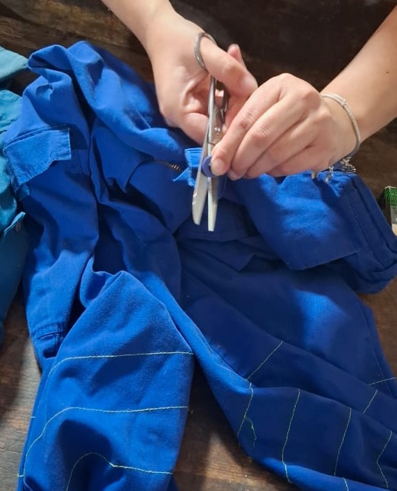 Tras realizar la separación de la ropa que estaba en condiciones de ser reciclada, aproximadamente la mitad de las prendas fue destinada a este proceso, que culminó con la confección de prácticos neceser, los cuales fueron entregados a los equipos que colaboraron en este plan piloto.